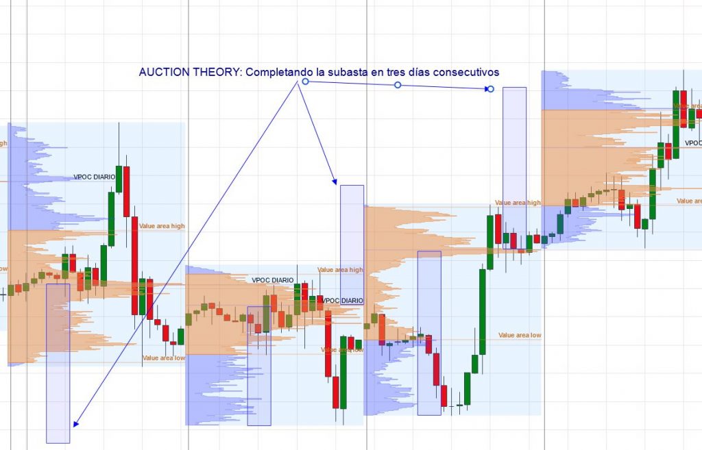 La integración de herramientas clásicas como el Price Action (directrices, canales, soportes, resistencias, módulos de arranque…) con Volume Profile y Auction Theory nos dará una visión mucho más amplia de posibles objetivos del mercado.